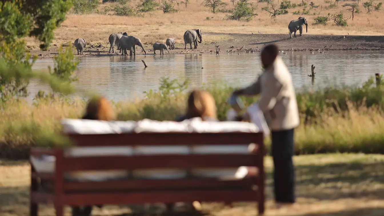 The shared spaces at the camp are just as inviting, featuring a warm and charming lounge that overlooks a serene natural spring and a dining tent where guests can savor freshly prepared meals. Decorated with rustic wooden furniture and bold animal-print details, these spaces create a seamless connection to the vast plains beyond. For those wanting a keepsake from this remarkable retreat, a quaint boutique offers handcrafted souvenirs, each reflecting the camp’s distinctive character and timeless appeal.